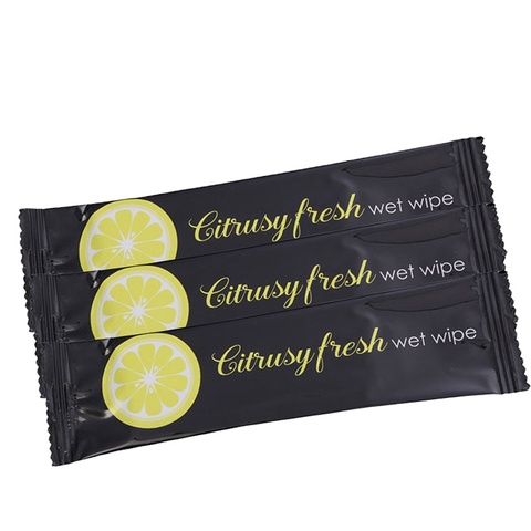 Único mini limpezas molhadas frescas personalizadas do limão livre do álcool em pacotes pequenos
